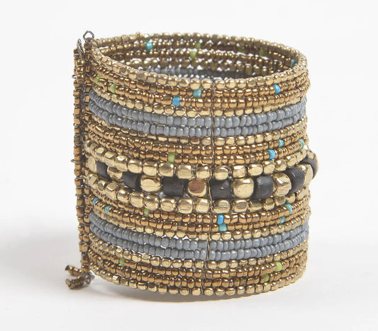 Beaded & Golden-Toned Iron Stacked Bracelet