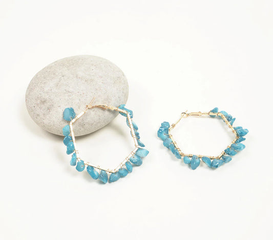 Ocean Blue Shells Hexagonal-Loop Earrings