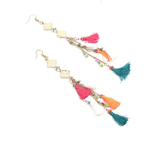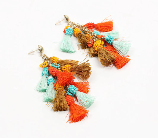Tropical Summer Tasseled & Beaded Dangle earrings