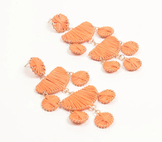 Raffia-Wrapped Gold-Toned Iron Chandelier Earrings