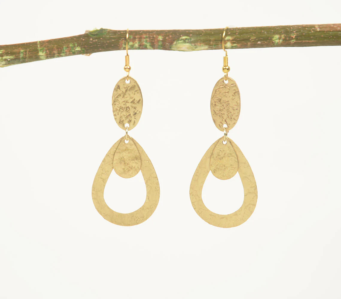 Beaten Brass Dangle Drop Earrings
