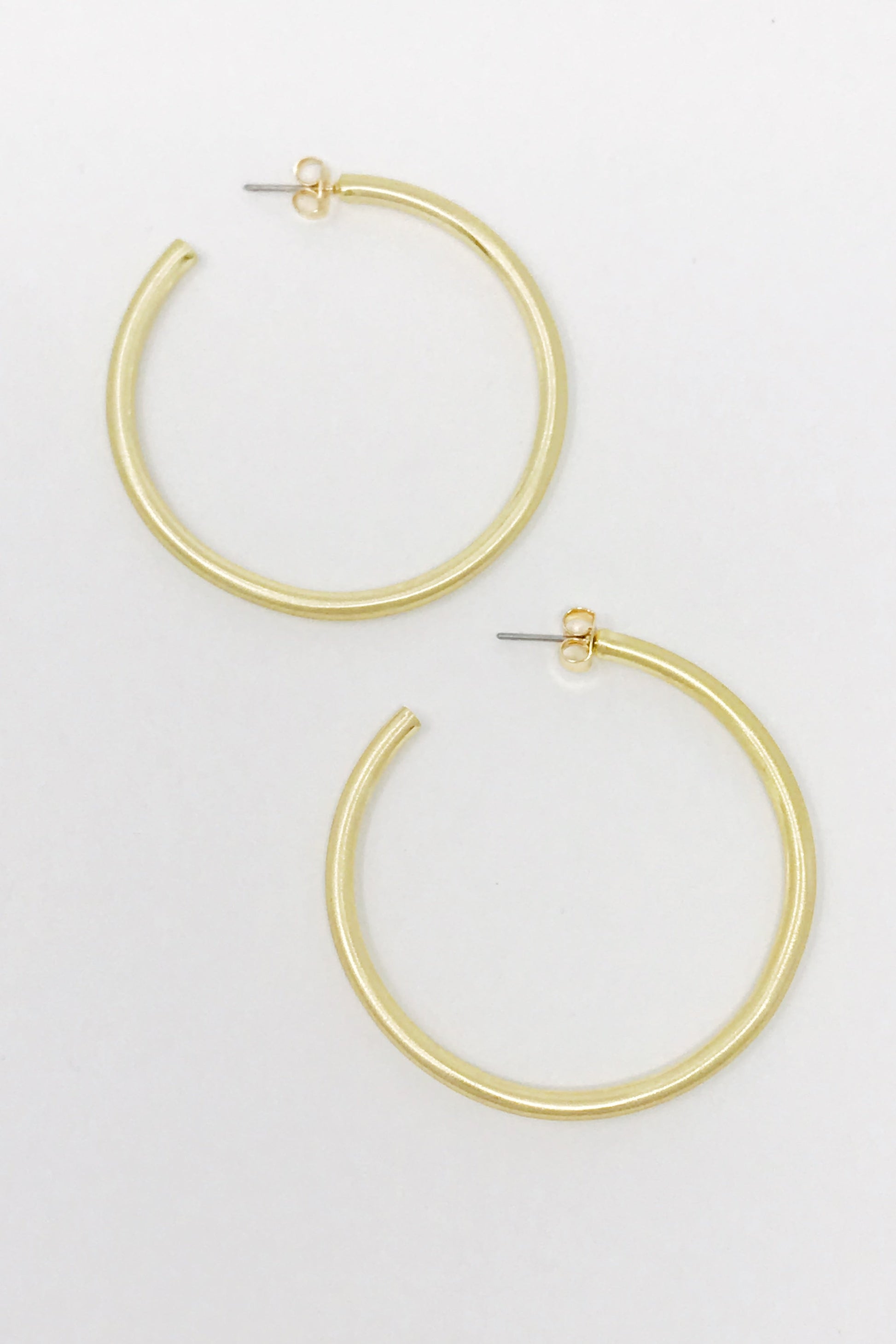 2 inch diameter hoops in satin finish. Classy size hoops for everyday.
