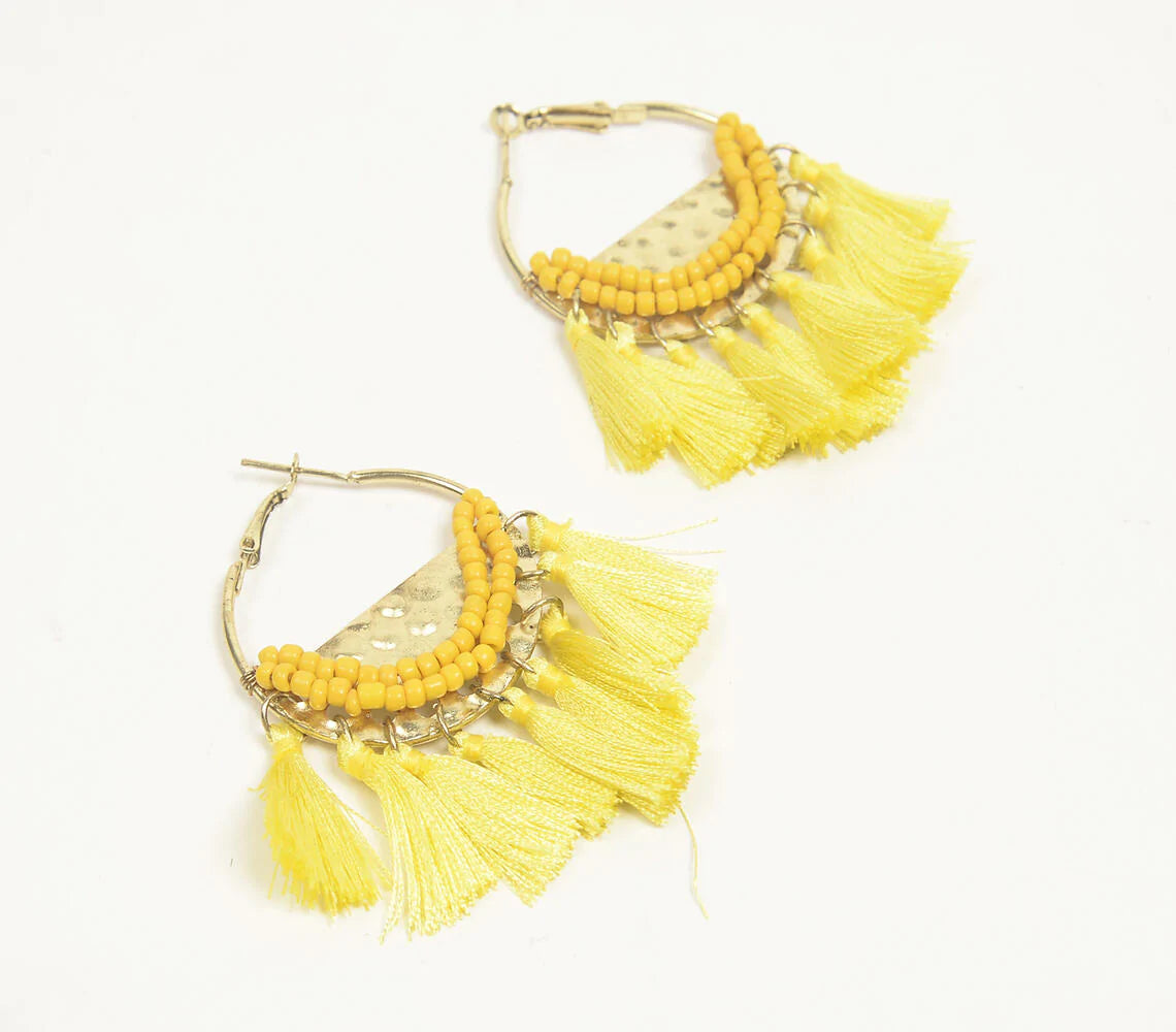Beaded & Tasseled Hoop Earrings